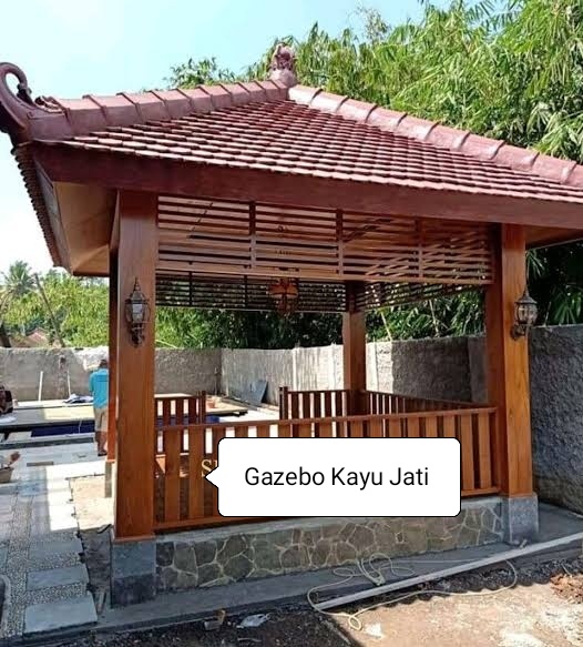 Perusahaan kami menerima jasa pembuatan dan pemasangan gazebo dengan beragam desain. Produk gazebo / saung dibuat dari bahan kayu jati berkualitas namun dengan penawaran harga terjangkau dibandingkan yang lain. Gazebo bisa anda pasang untuk kebutuhan teras depan rumah, halaman belakang, taman, maupun pinggir kolam. Konsultasikan kebutuhan gazebo kayu jati anda dengan tim kami.